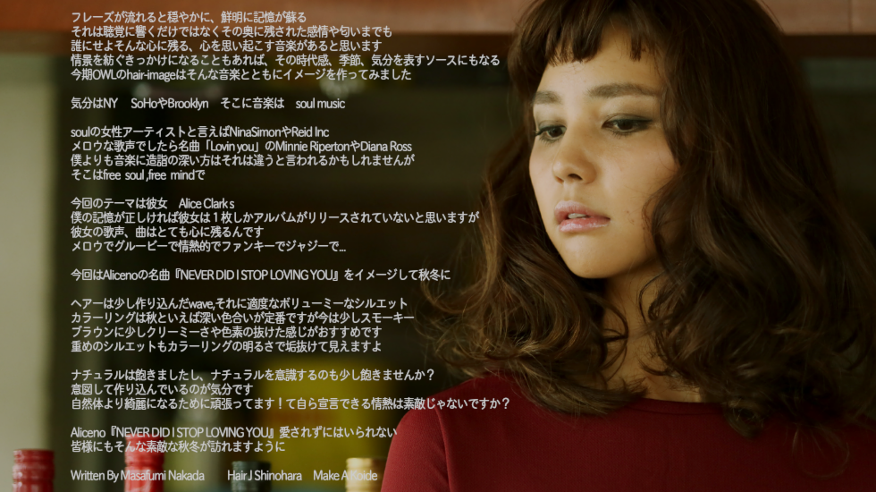 今期OWLのhair-imageはそんな音楽とともにイメージを作ってみました