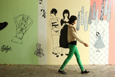 デニムやツイード素材のラギットなものよりもヴィビットなカラーパンツやタイツ。